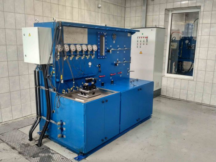 Испытательный комплекс СГИ-12.00.00.00.000 для гидрооборудования состоит из двух испытательных стендов с единой системой управления: Стенд для испытания серво, пропорциональной и дискретной аппаратуры
