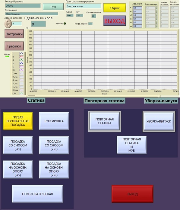 Программное обеспечение стендов уникально, в него вложены параметры математического моделирования с учетом корректирующих сигналов при измерениях. Программа создана на языке программирования LabView. Язык верхнего уровня не только обрабатывает данные с датчиков, но и выдает сигналы управления в соответствии с заданным алгоритмом. Результаты испытания экспортируются в Excel. В качестве устройства ввода-вывода сигналов используется отечественная система L-Card. Также стенды оснащены сенсорными экранами AdvanTECH FPM-3171G-RCE.