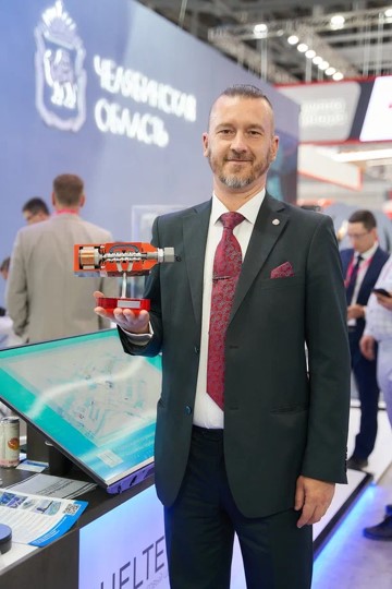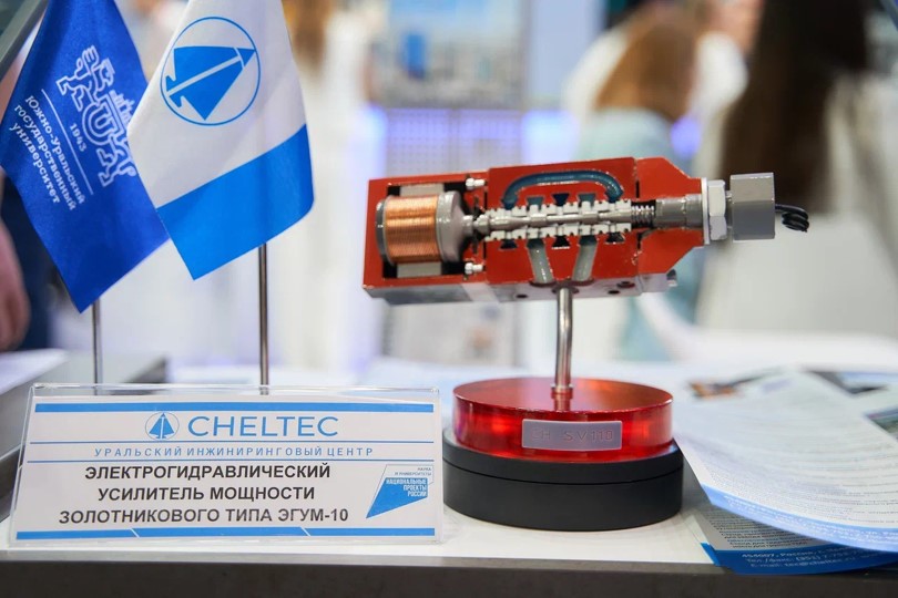 На стенде Челябинской области компания «Уральский инжиниринговый центр» представила высокотехнологичную разработку электрогидравлического усилителя мощности ЭГУМ-10. Экспонат пока представлен в виде натурного макета в масштабе 1:1.