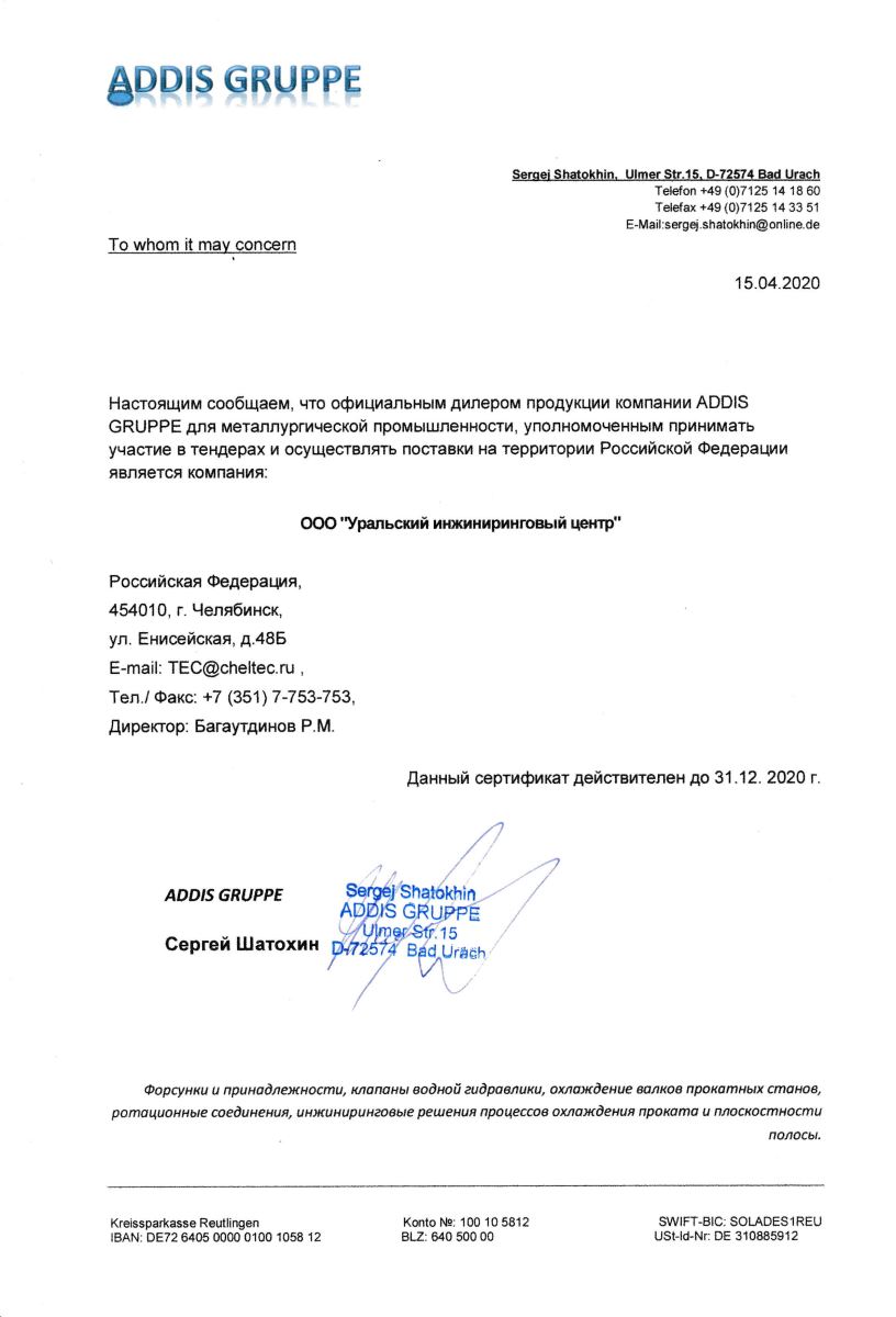 Компания УрИЦ стала официальным дилером компании ADDIS GRUPPE