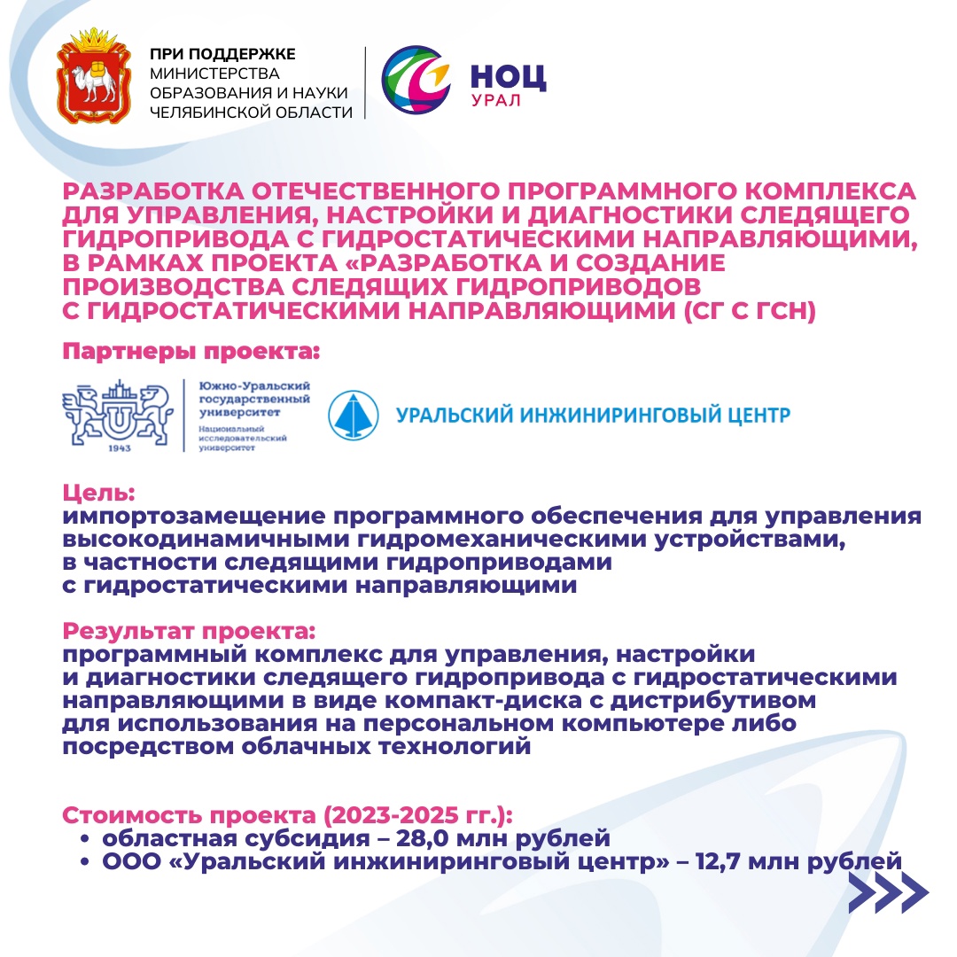 Планируемым результатом реализации научно-технических проектов является разработка импортозамещающей продукции и технологий и их внедрение в производство Челябинской области в 2023-2025 годах.