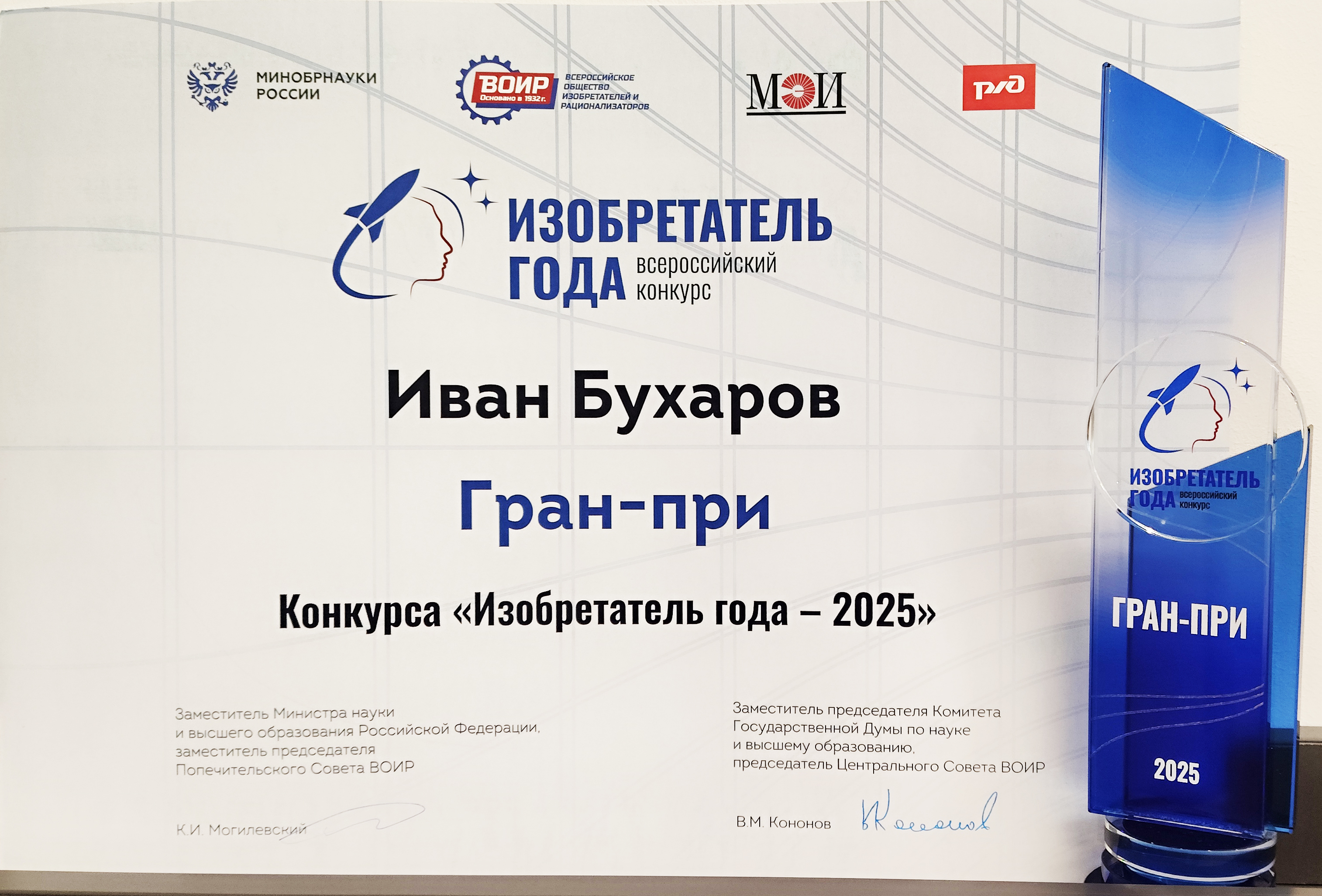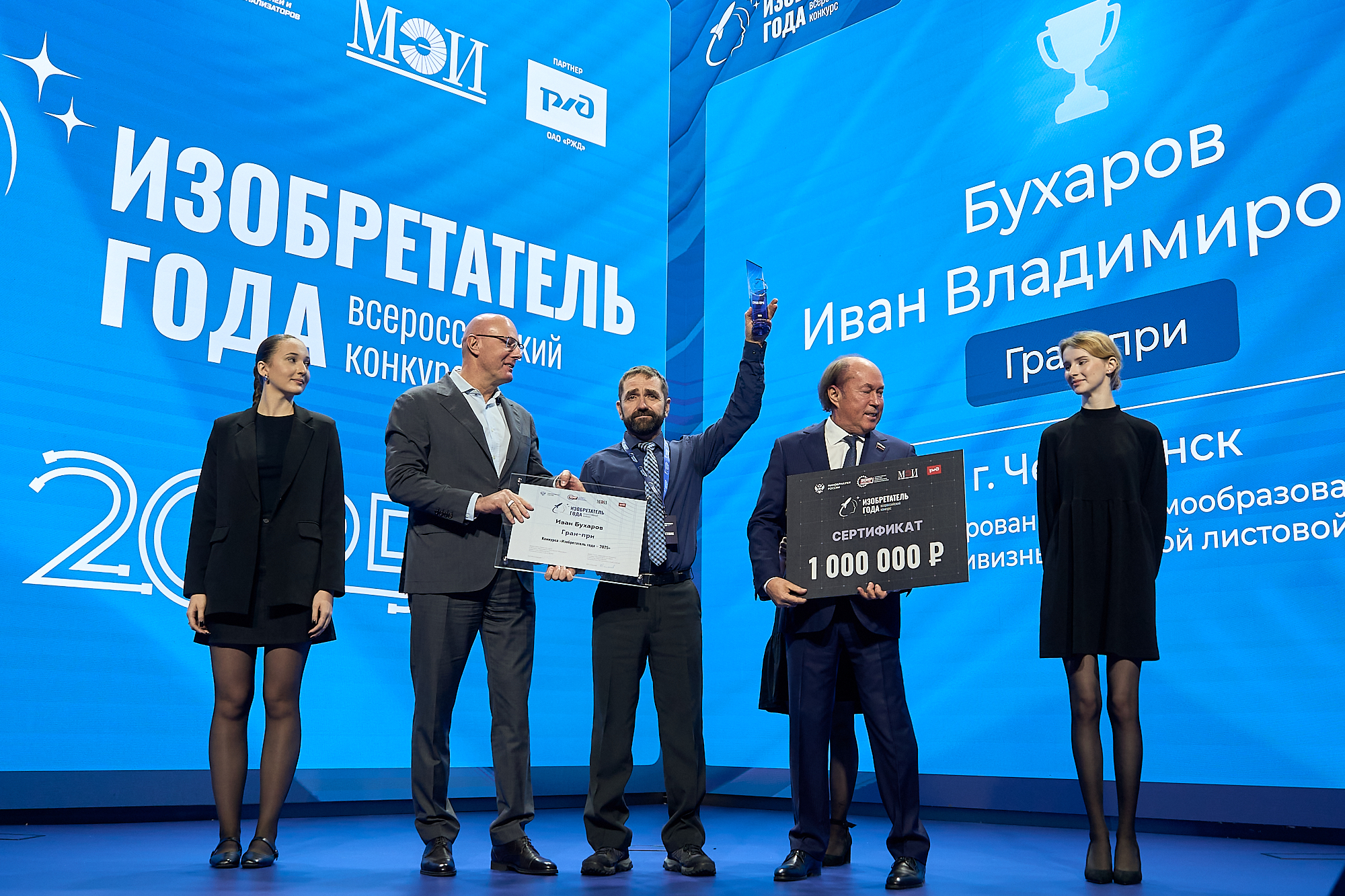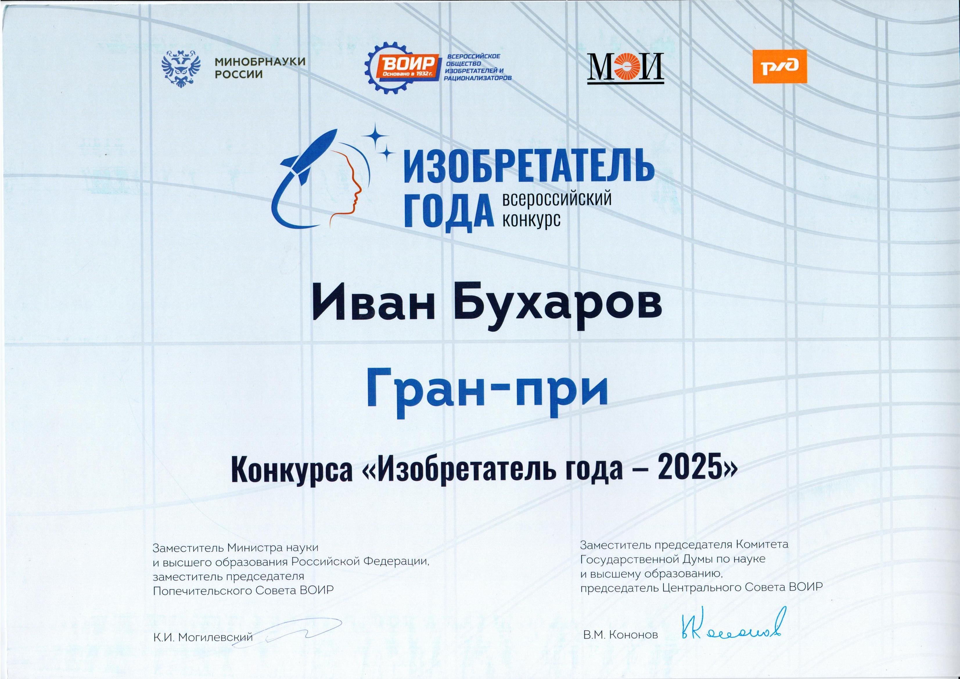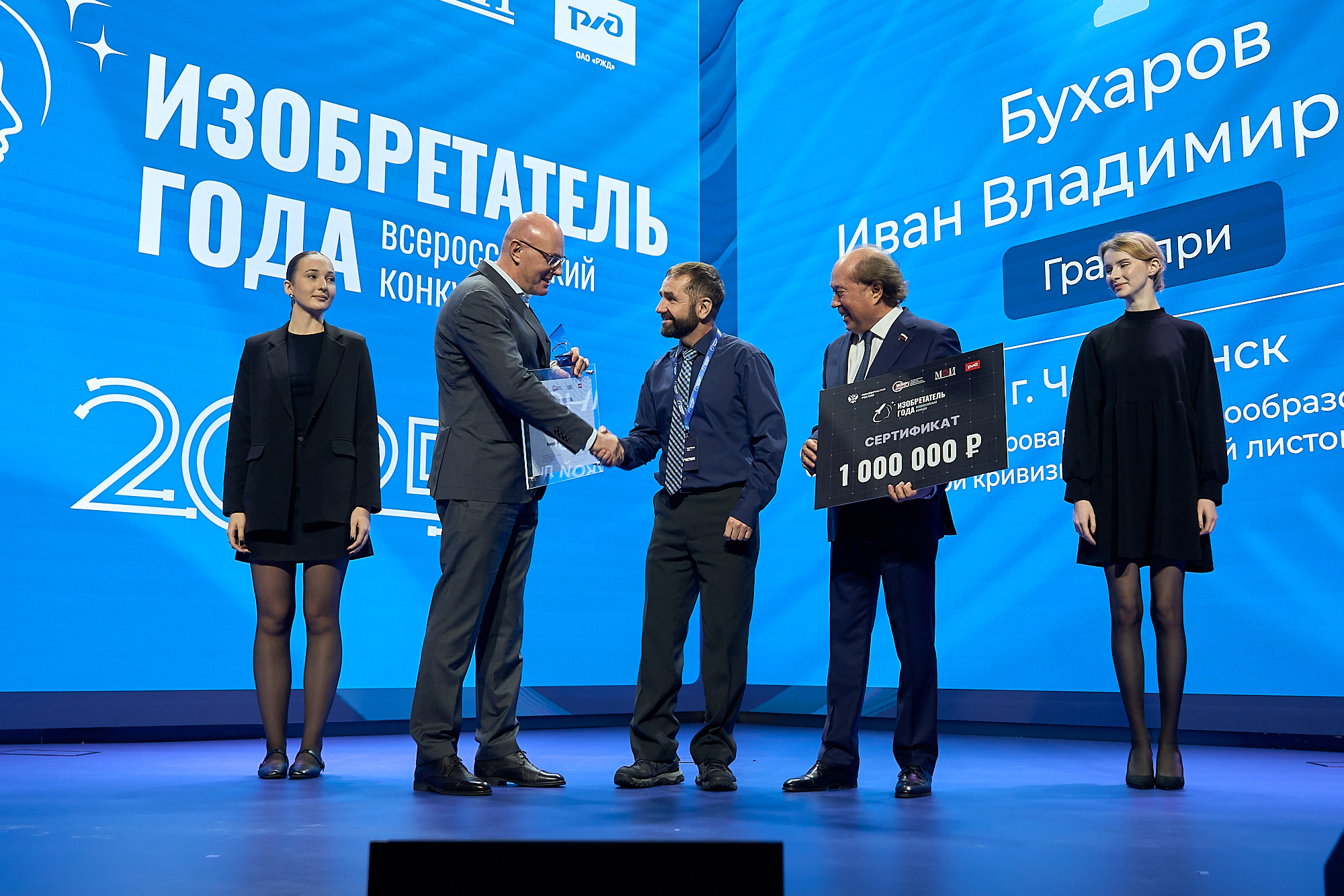 Сертификат на один миллион рублей Ивану Бухарову вручил заместитель председателя Комитета Госдумы по науке и высшему образованию и председатель центрального совета ВОИР Владимир Кононов.