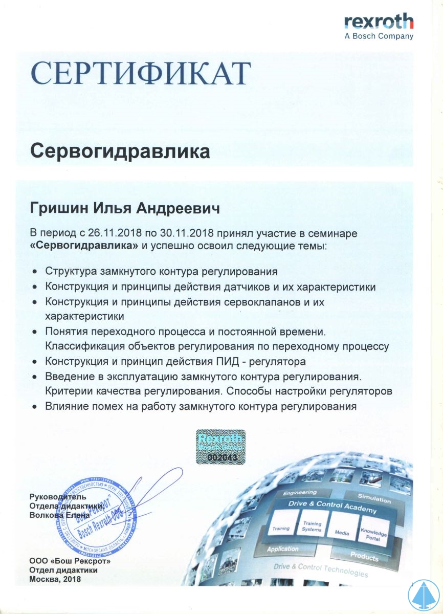 С 26 по 30 ноября 2018 года специалисты Cheltec успешно прослушали курс "Сервогидравлика". Во время теоритической части семинара участники познакомились с конструкциями и принципами действия сервоклапанов, датчиков, ПИД-регулятора. В практической части семинара участники провели на учебных стендах моделирование различных режимов работы сервоклапанов, возникающих при работе в гидпроприводах. Также изучили влияние помех на работу замкнутого контура регулирования.
