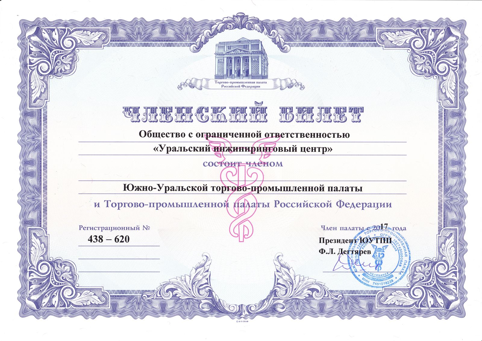 Уральский инжиниринговый центр является Членом Южно-Уральской торгово-промышленной палаты и Торгово-промышленной палаты РФ с 2017 года.