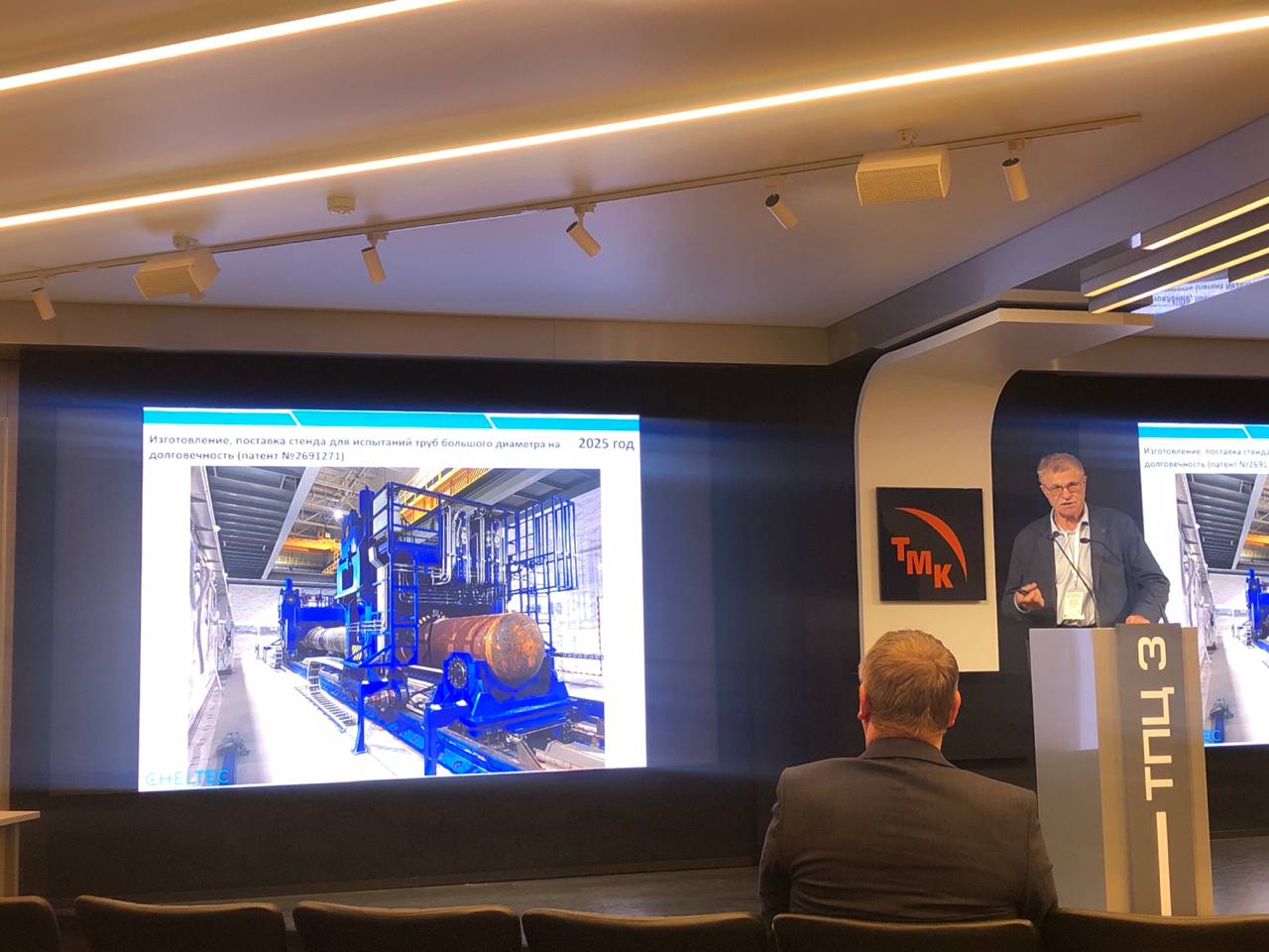 Главный инженер УрИЦ Александр Алексеевич Батурин выступил с докладом "Статические и ресурсные испытания труб. Разработка, производство и поставка специализированных стендов для испытаний труб и трубопроводной продукции". Александр Алексеевич представил компетенции УрИЦ для трубной промышленности, рассказал об уникальных испытательных стендах, применяемых в современном производстве.