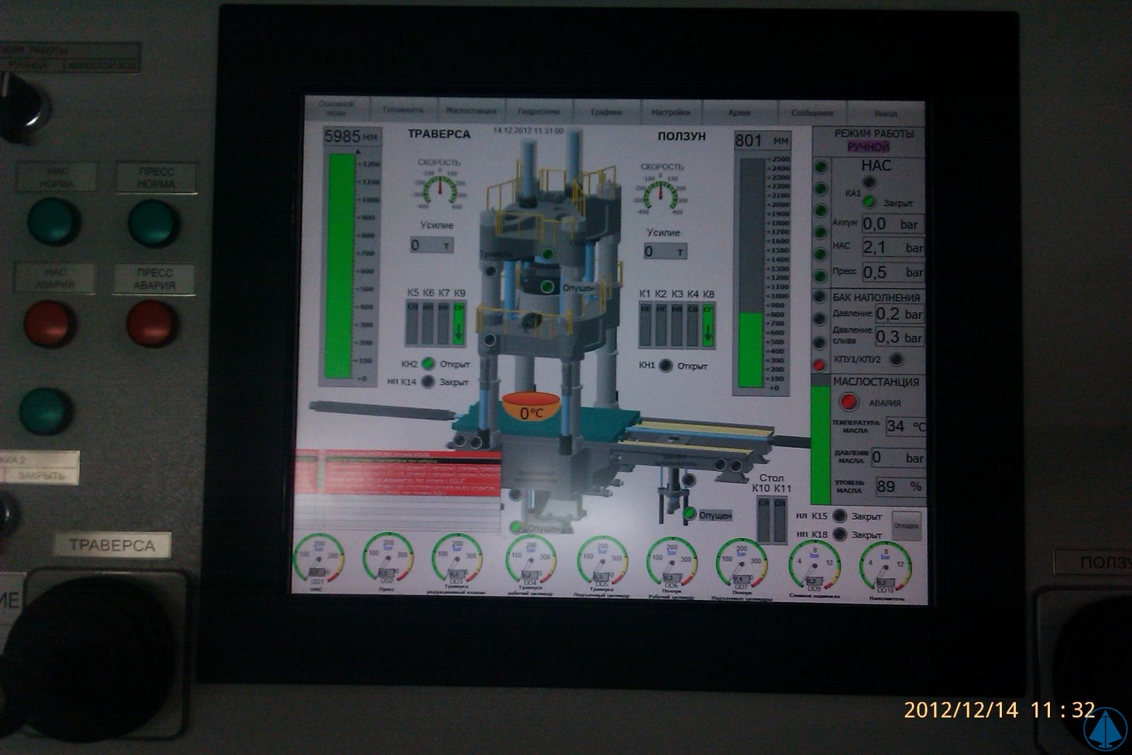 - Установлены датчики уровня рабочей жидкости в гидравлических и воздушных баллонах НАС пресса