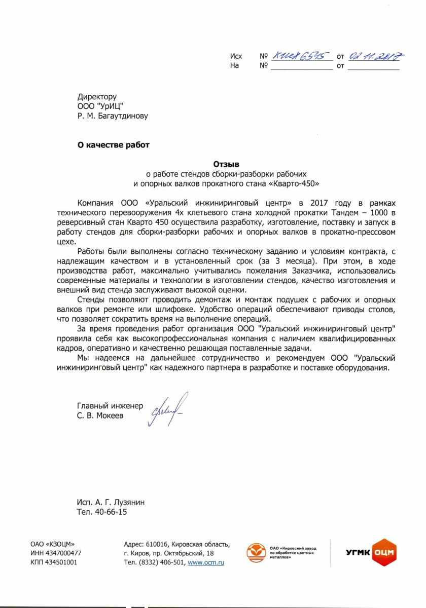 - 2013 — Проектирование, изготовление и поставка коллекторов гидросбива черновой группы клетей ЛПЦ-4, ЛПЦ-10, коллекторов печного гидросбива ЛПЦ-9.