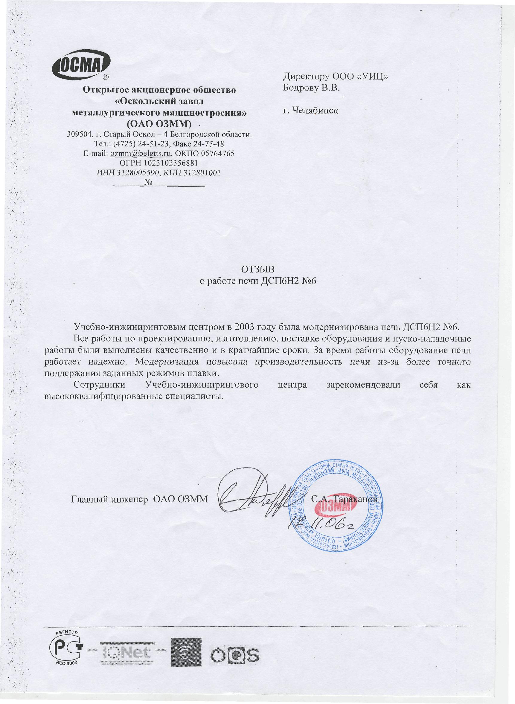 ООО «Уральский Инжиниринговый Центр», при реализации проектов по техническому перевооружению печей, учитывает все индивидуальные особенности оборудования, организации производства, требования заказчика.