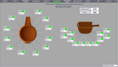 Универсальная, модульная структура системы управления печью и системы визуализации позволяет расширять систему и интегрировать в нее прочие системы и оборудование, входящие в состав печи (весодозировка, горелки, аргон, кислород).