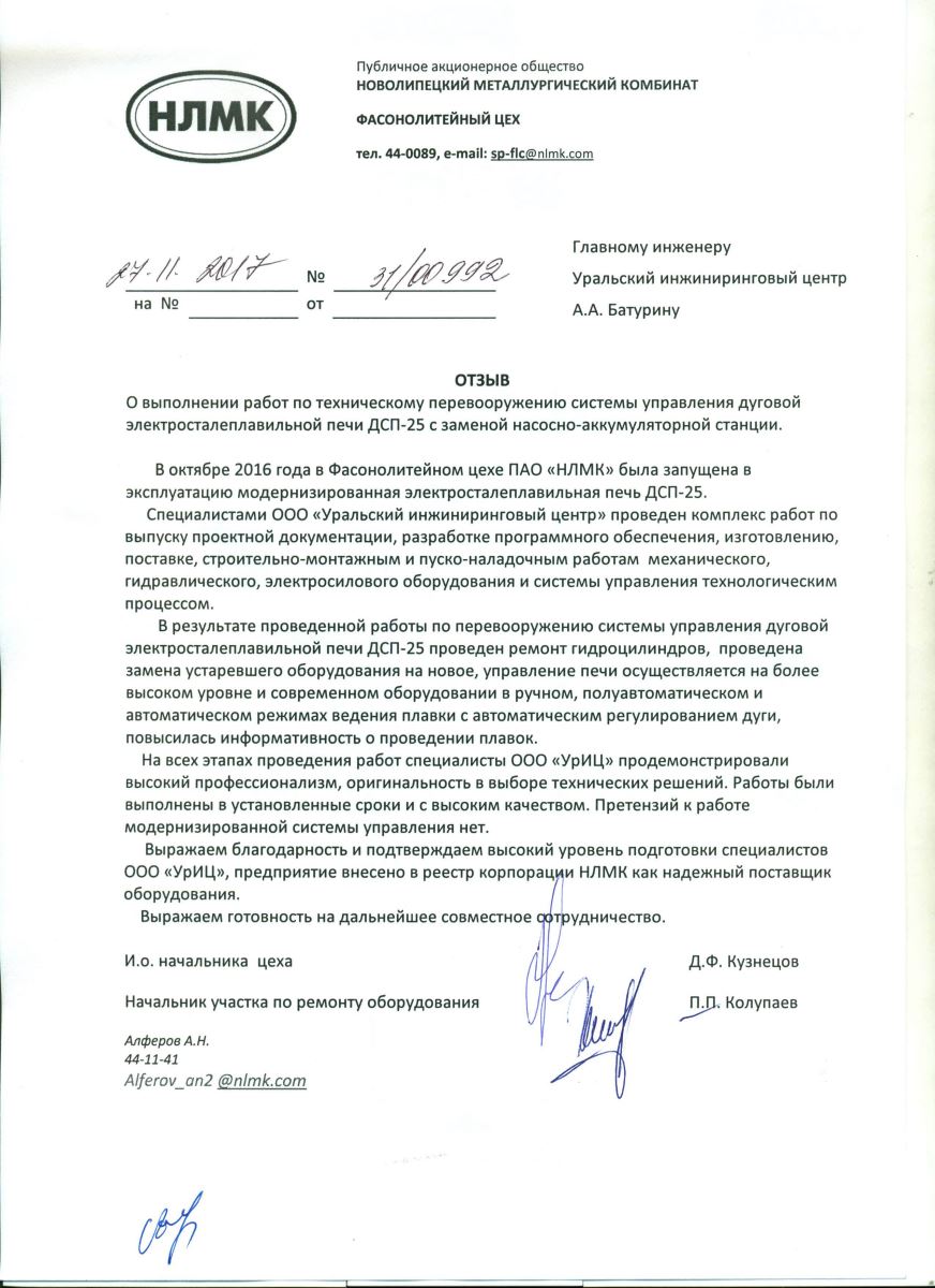 За последние годы специалисты ООО «Уральский Инжиниринговый Центр» модернизировали более 17 сталеплавильных печей и агрегатов на металлургических предприятиях России и СНГ.