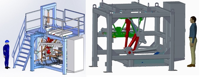 Создана продуманная многокоординатная система со взаимным влиянием осей и обратной связью по силе. В качестве силовозбудителей используются гидравлические цилиндры с пропорциональным управлением. Силовая рама является замкнутой, вследствие чего стенд не требует специальных полов и фундаментов для установки. Для измерения перемещений создана фальш-рама с закрепленным на ней триангуляционными датчиками перемещений, что позволяет исключить влияние деформации самой рамы при измерении деформации испытываемого изделия.
